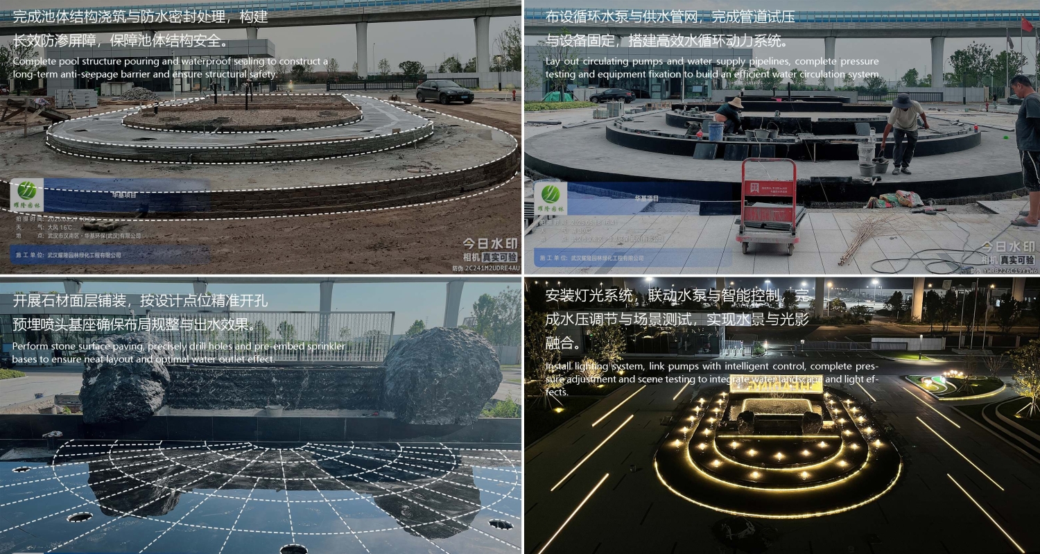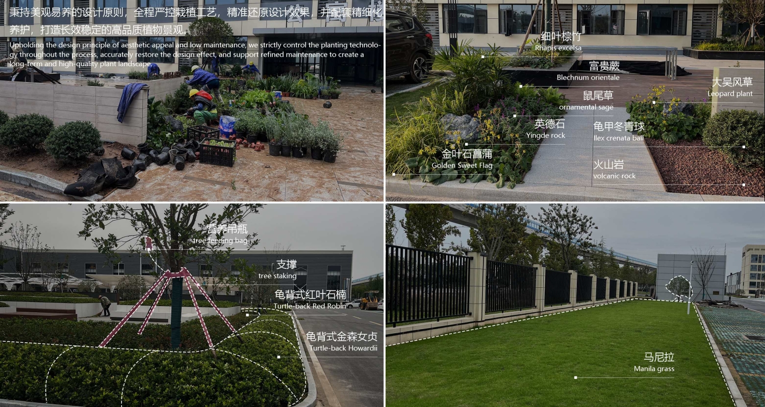 华基环保产业园作为耀隆景观以EPC模式(设计-采购-施工一体化)打造的标杆项目,于2024年10月启动设计,2025年10月竣工,通过景观工程与环保技术的深度融合,构建了集研发、办公、休闲于一体的生态办公园区。